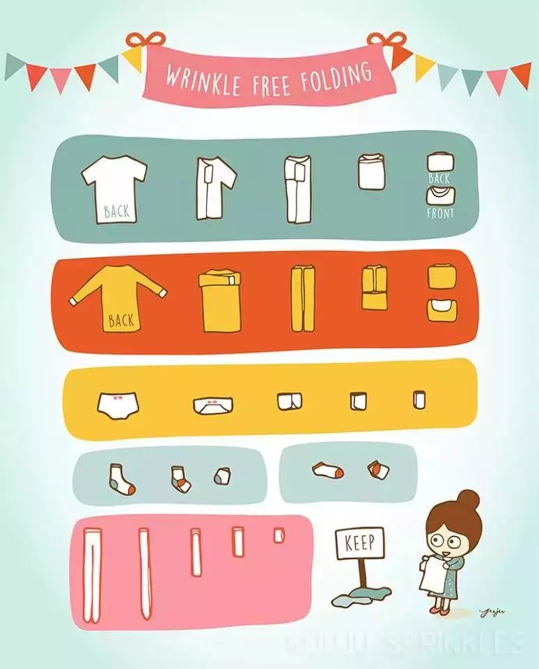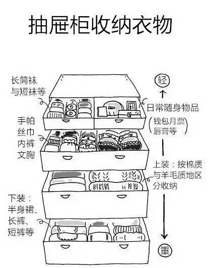 我们日常整理衣物时,基本上把衣服一件叠在一件上面。看似已经整理的很整齐但是每次抽衣服的时候就十分麻烦,好不容易建起的“大楼”便轰然倒塌。