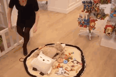 打开袋子、扔进去、封上。对于有事没事都爱装装装的孩子们,收纳玩具变成了游戏的一部分。