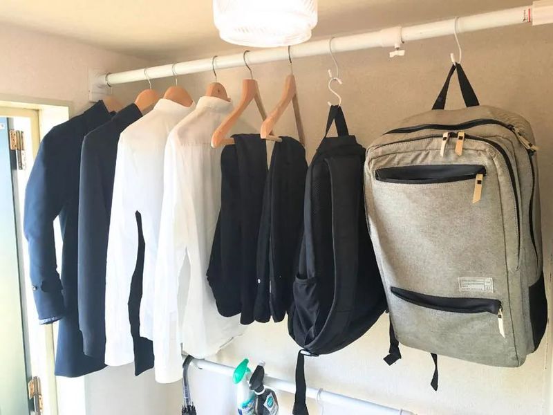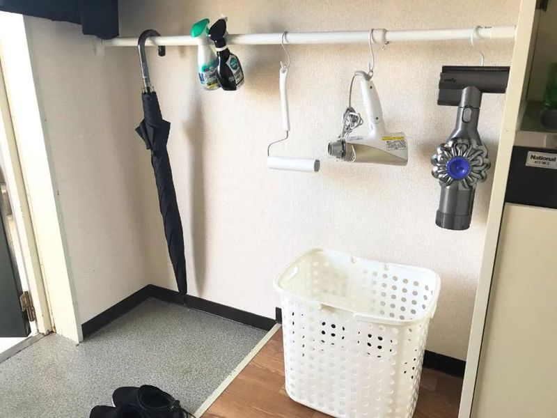 玄关上的一根伸缩杆用来悬挂次净衣。